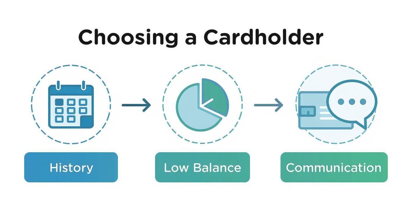 This infographic breaks down the key things to look for in a primary cardholder, from their credit habits to their communication style.