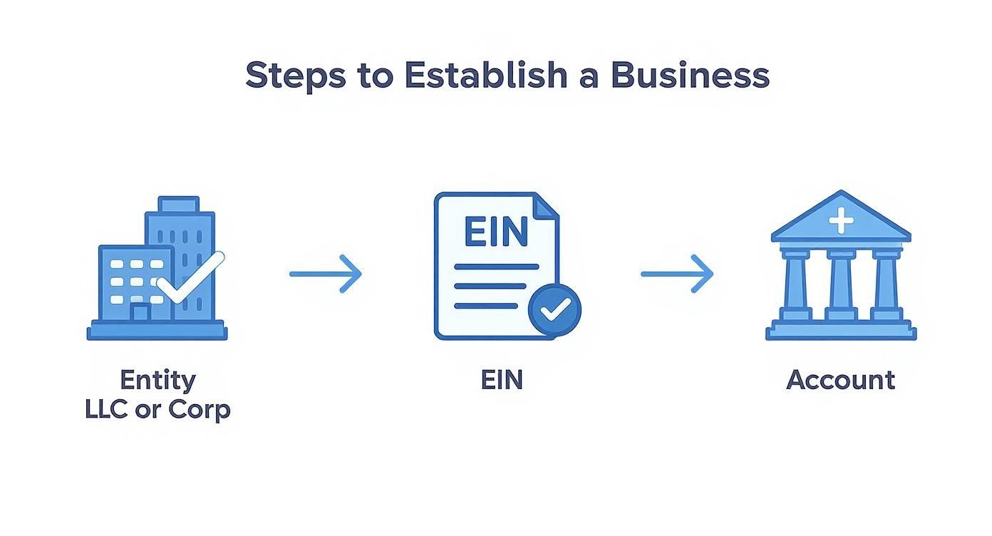 Establishing your business as a separate financial entity is the first and most critical move you'll make in building business credit. It's all about drawing a clear, undeniable line in the sand between your personal finances and your company's. This means registering your business legally, getting an Employer Identification Number (EIN), and opening a dedicated business bank account. These aren't just bureaucratic hoops to jump through; they're the foundational pillars that prove to lenders your business is a legitimate, standalone operation.