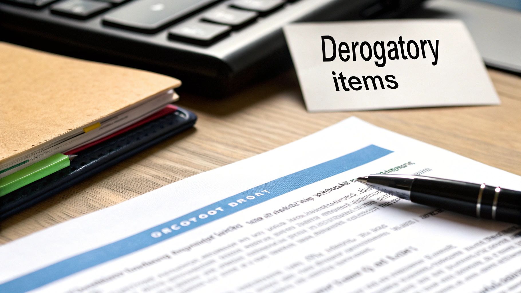 Before you can fix the problem, you need to know exactly what you’re up against. Derogatory items are basically red flags on your credit report that scream "risky borrower" to lenders. These marks can drag your credit score down, making it much harder to get a loan, a new credit card, or even rent an apartment.
