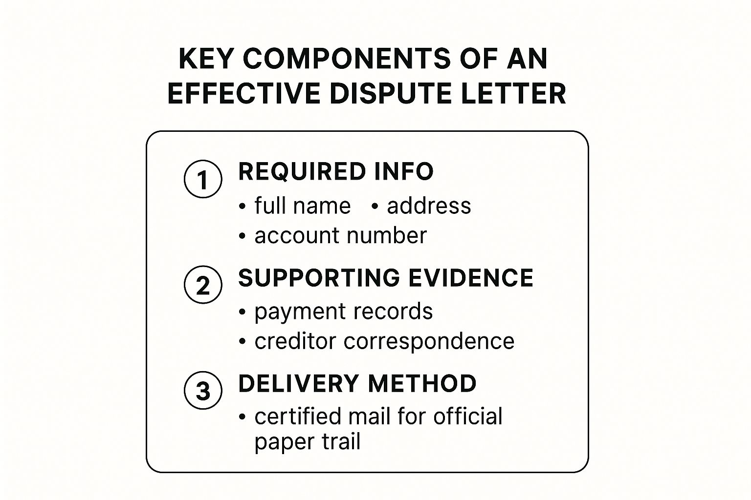 This small extra cost is an investment in your protection. If a bureau drags its feet or claims they never got your letter, your certified mail receipt is the hard evidence you need to hold them accountable. If you want a more detailed breakdown of the process, you can get more specifics on how to dispute credit report errors to make sure you've got all your bases covered. This old-school method shows them you’re serious.