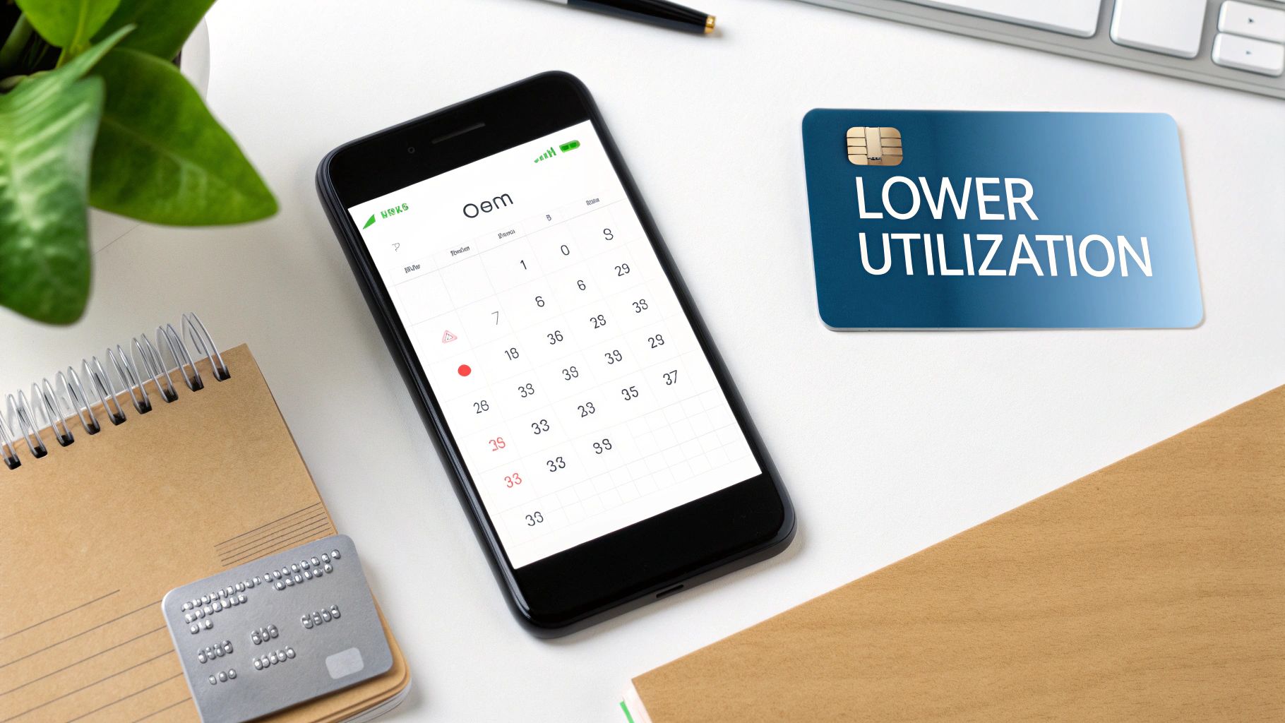Of course, aggressively tackling your balances is key. If you need a solid game plan, check out a practical guide on how to pay off debt. Every single dollar you pay off shaves a bit more off your utilization percentage.